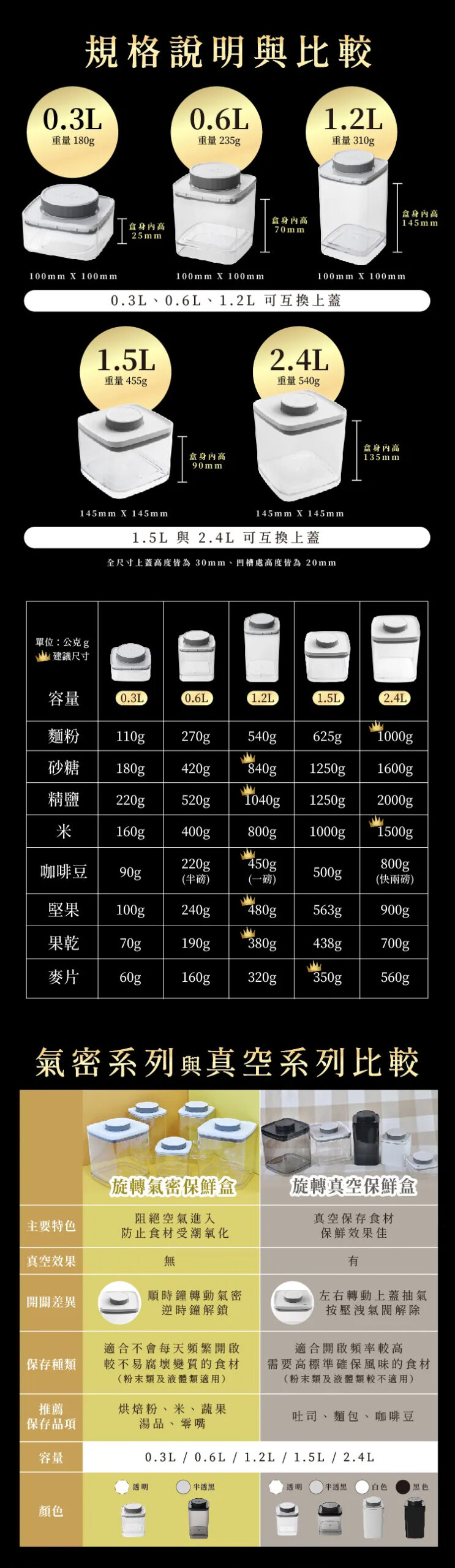 6. 低於兩週內要使用完畢的建議氣密罐,高於兩週的就可以考慮真空系列。