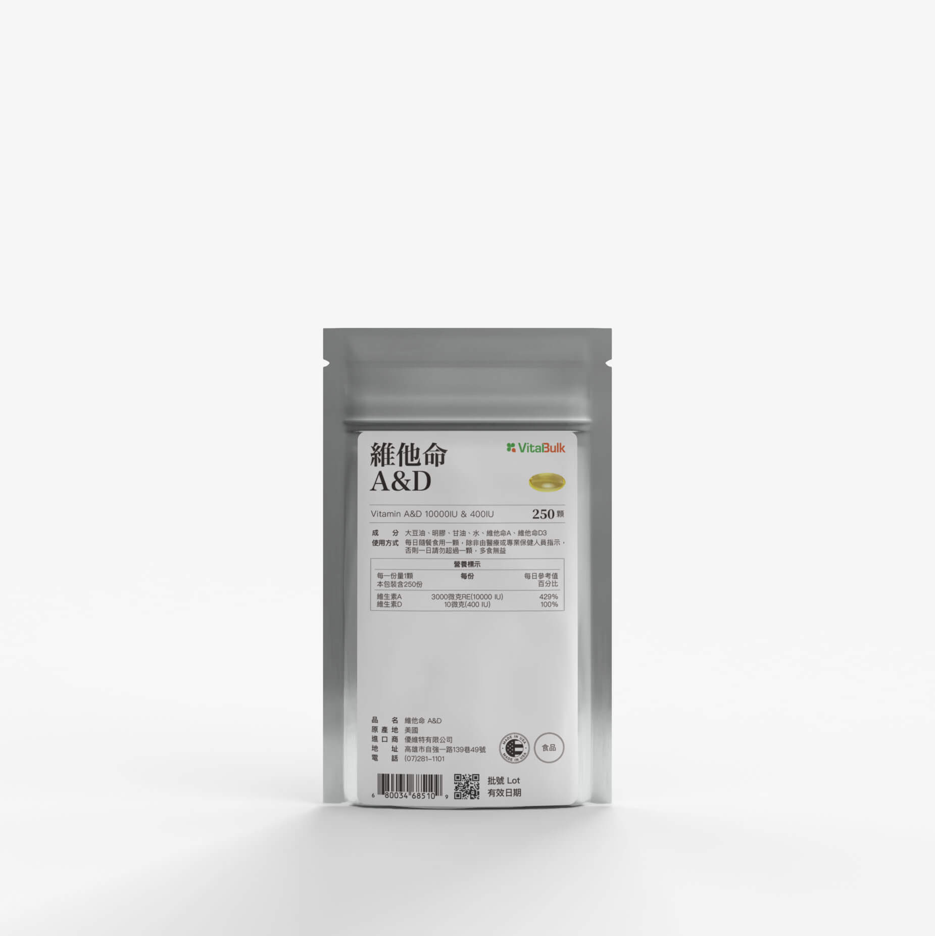 ◆商品名稱:VitalBulk 維他命A&D 10,000IU & 400IU