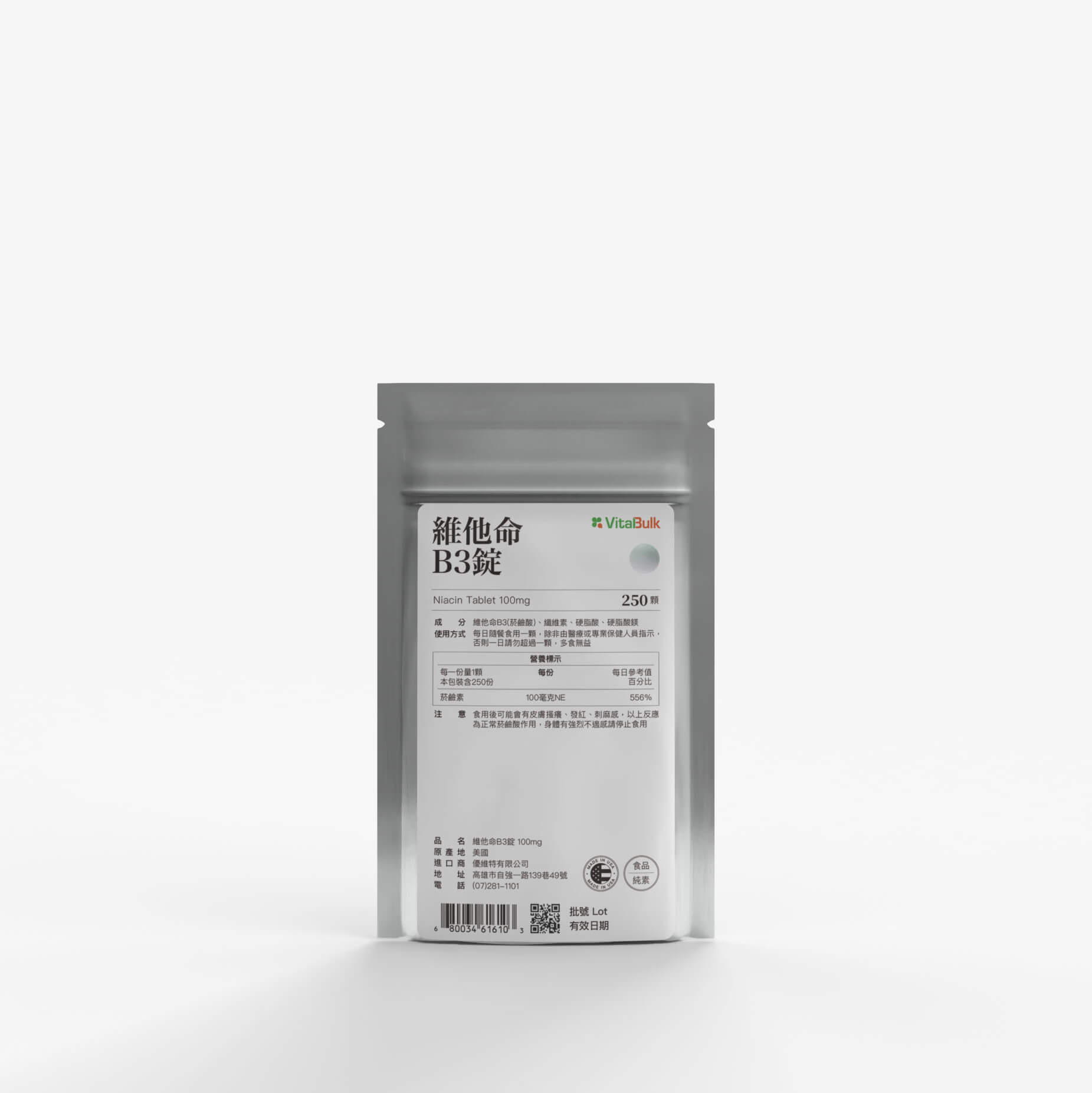 ◆商品名稱:VitalBulk 維他命B3 (菸鹼酸) 100mg 錠狀