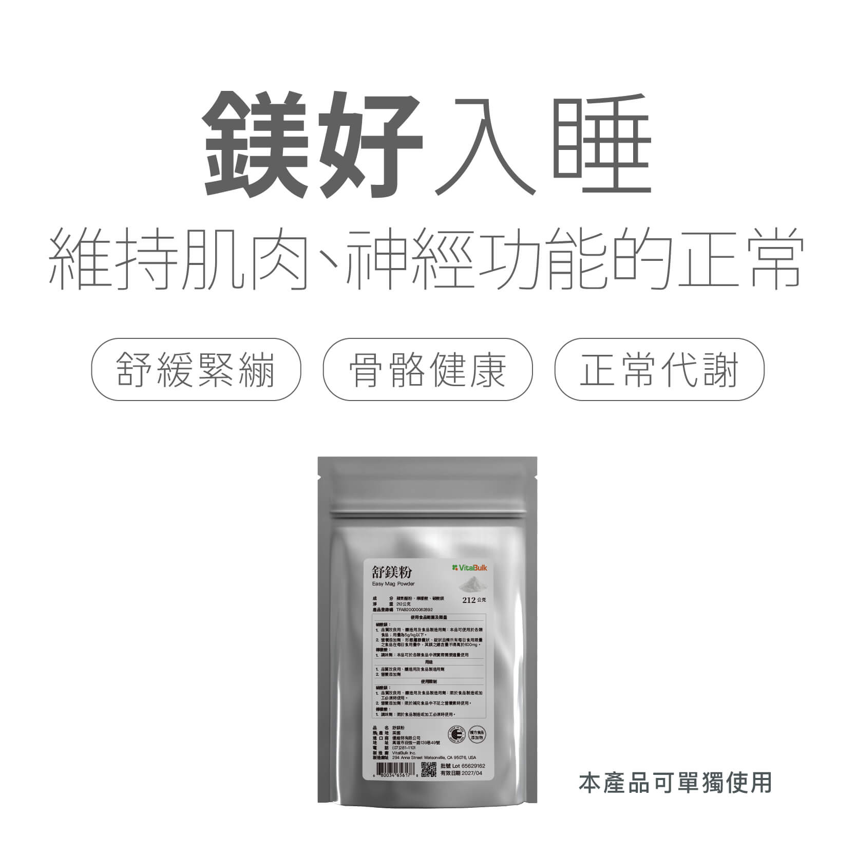 ◆商品名稱:VitalBulk 舒鎂粉