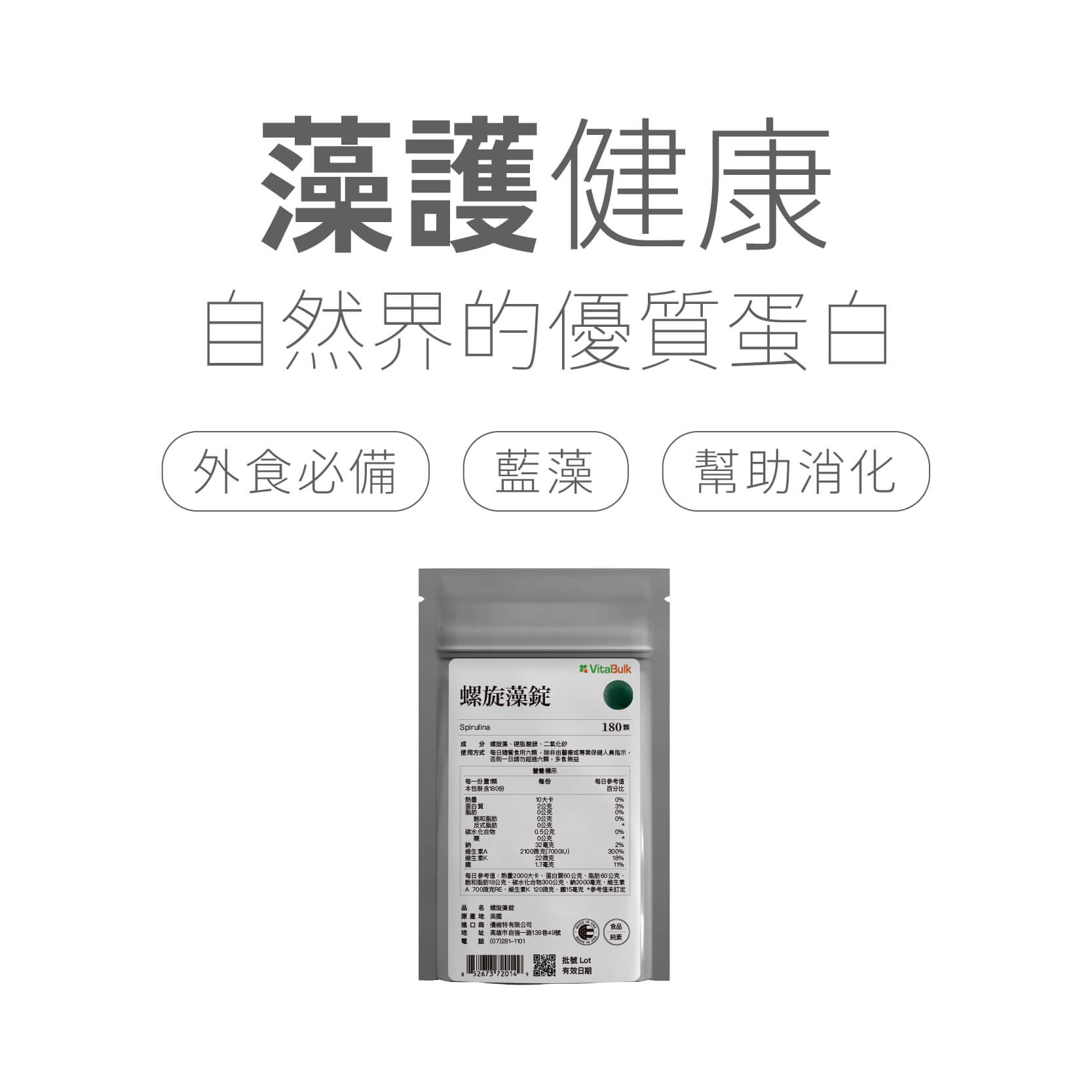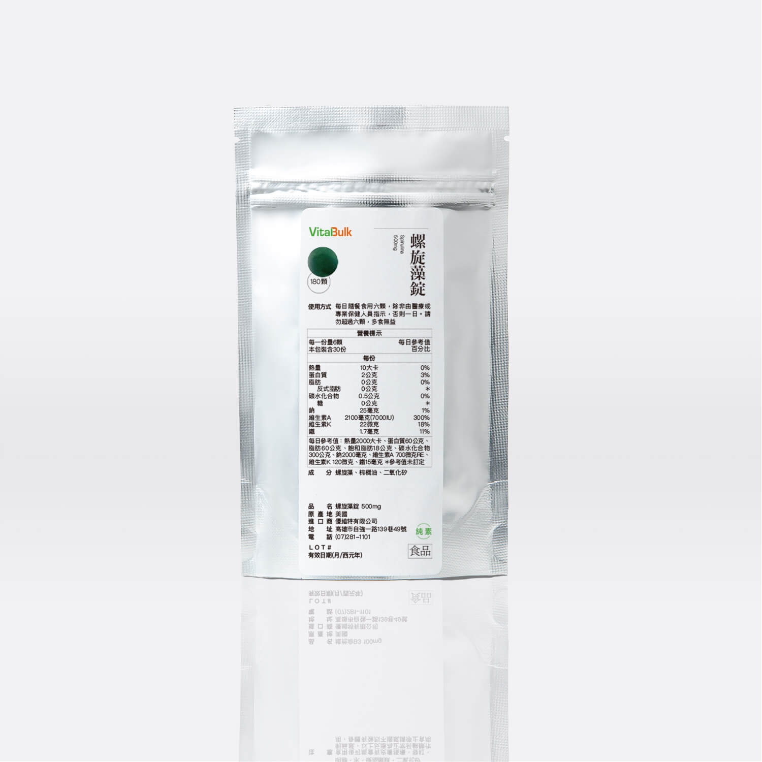 ◆商品名稱:VitalBulk 螺旋藻錠 500mg