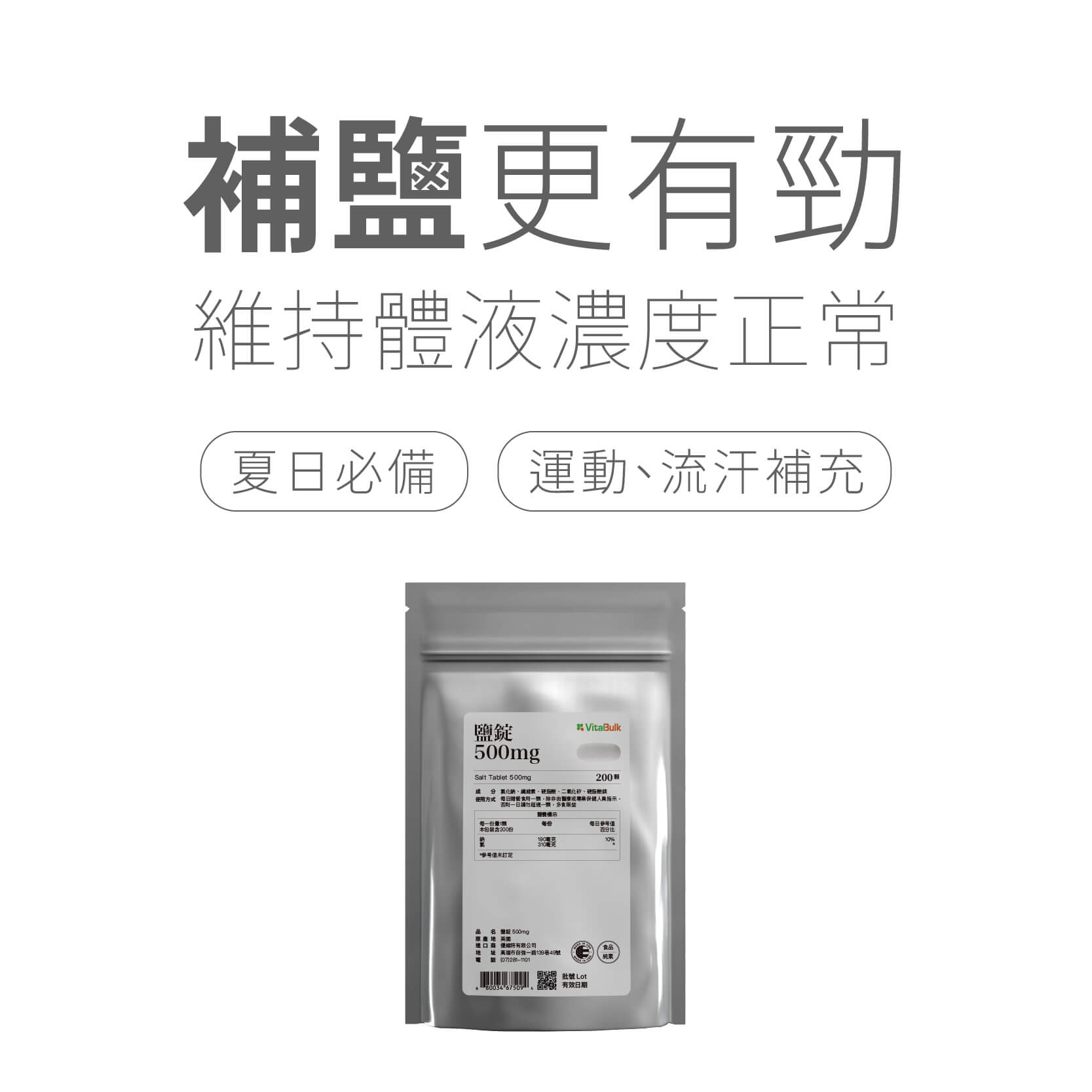 ◆商品名稱:VitalBulk VitalBulk 鹽錠 500mg